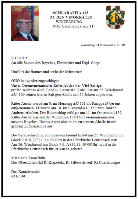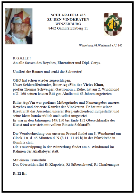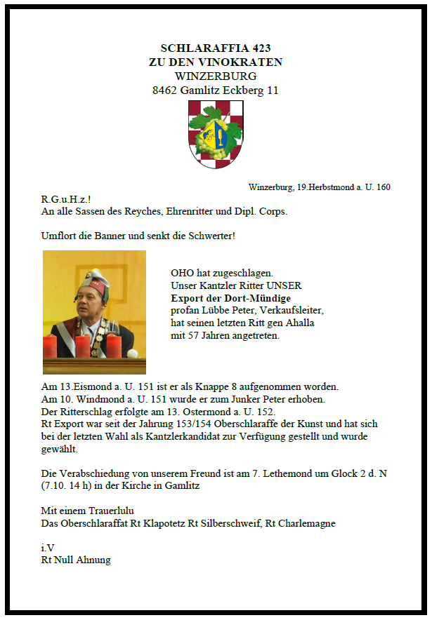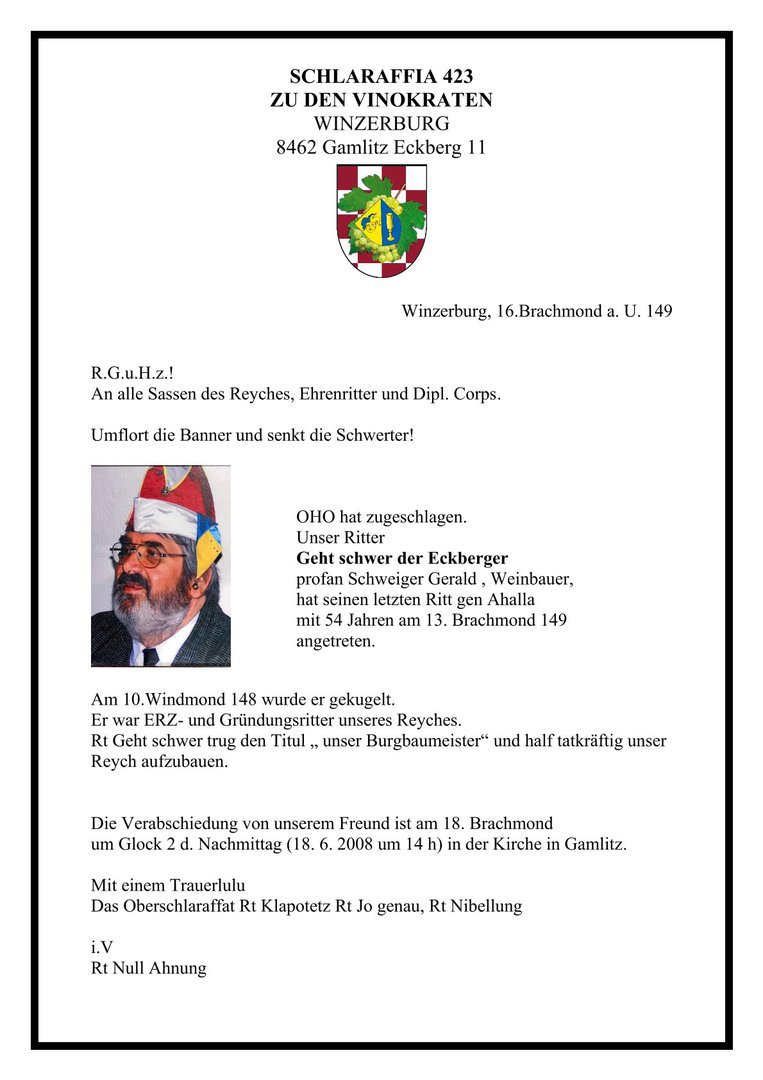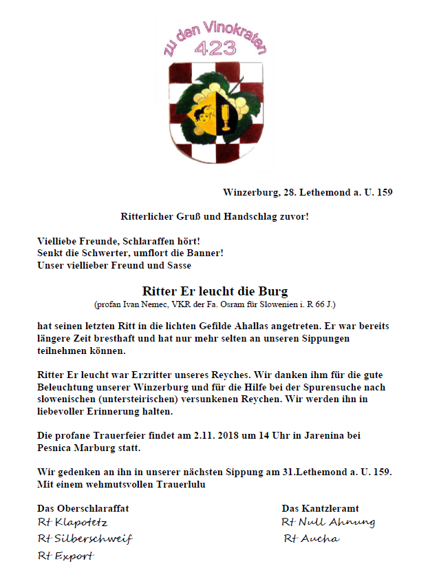 Schlaraffia zu den Vinokraten Fötschach 9