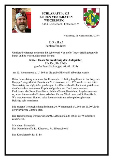 Wir trauern um unsere Sassen die gen Ahall geritten sind.